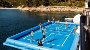 • Optional floating/inflatable pickleball court deployment (if arranged as an add-on)