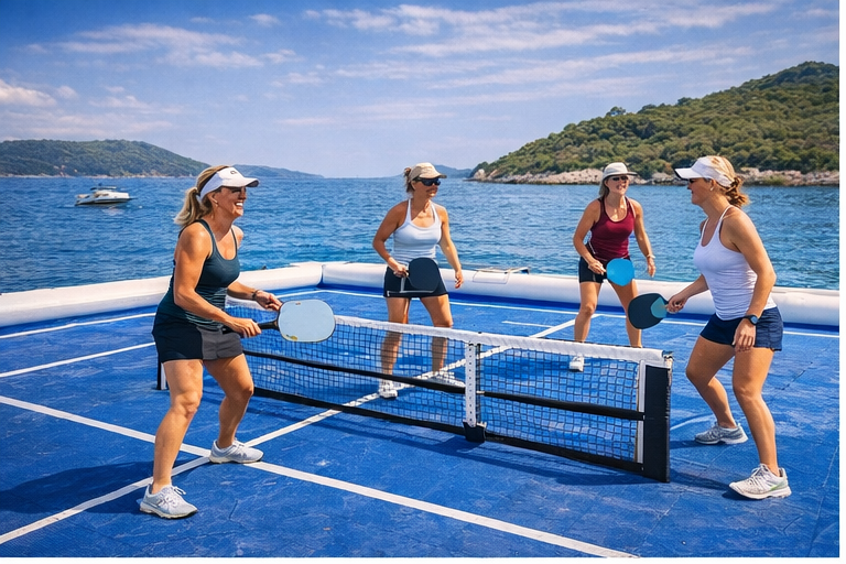 • Signature “play at sea” moment: optional floating/inflatable pickleball court in a calm bay (must be pre-arranged; weather/sea-state dependent; may be a supplemental add-on)